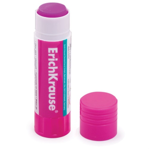 Клей-карандаш ERICH KRAUSE с клеящим полимерным компонентом подкрашен пигментом, который обесцвечивается при контакте с воздухом. Слой клея на бумаге хорошо виден, что помогает наносить клей предельно точно и аккуратно.