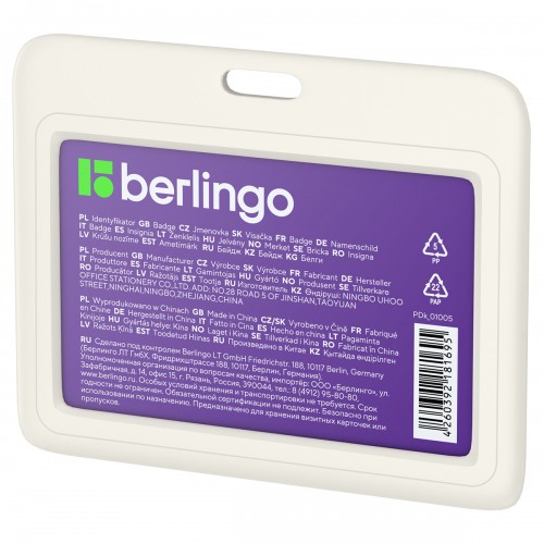 Горизонтальный бейдж Berlingo серии ID 200 выполнен из прочного ABS пластика, поэтому не помнется в кармане или в сумке. Оснащен удобной крышкой-слайдером. Размер изделия светло-серого цвета – 78*98. Внутри бейджа находится бумажный вкладыш размером 55*85 мм, на лицевой стороне которого указана выходная информация о товаре и шк/артикул для продажи, а оборотная сторона вкладыша подготовлена под персонализацию. Подходит для хранения пропуска, визитной карточки или проездного билета. Поставляется без держателя в комплекте. Идеально сочетается с любым лентами или держателями для бейджей Berlingo. Каждый бейдж упакован в индивидуальный пакет для защиты от пыли и грязи.