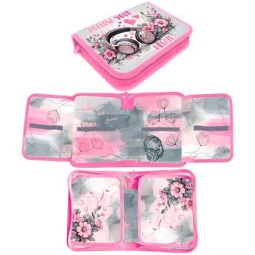 Пенал 1 отделение 20*14*4см 'Розовые наушники' ОНИКС, 2 откидные планки, ткань