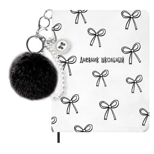 Дневник школьный в комплекте с брелоком, формат А5+, 48 листов арт. 72425 / 15 БАНТИКИ НА БЕЛОМ (кожзам: А5+