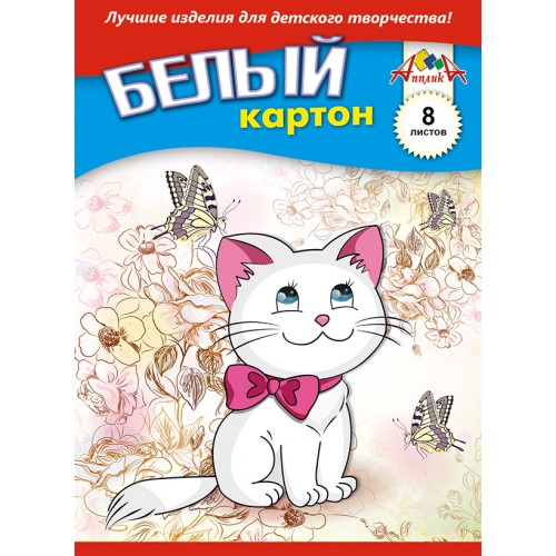 Картон белый А5 8л 'Белый котенок' АППЛИКА
