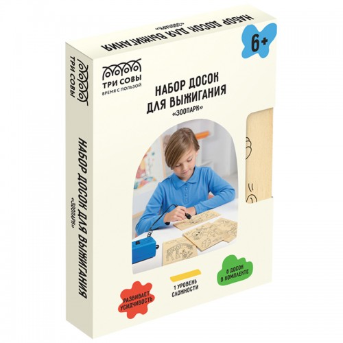 Набор досок для выжигания по дереву ТРИ СОВЫ "Зоопарк" отличный подарок для ребенка.