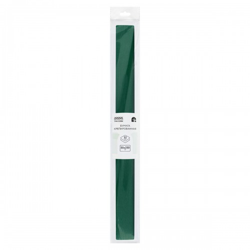 Крепированная бумага в рулоне «ТРИ СОВЫ» – отличный выбор для творчества. Полотно темно-зеленого цвета шириной 50 см и плотностью 32 г/м2 имеет длину 2,5 метра и упаковано в прозрачный пакет с европодвесом. Бумага тонкая, с мелким гофром и растяжением 60%. Товар отличается высоким качеством и не оставляет следов краски.
