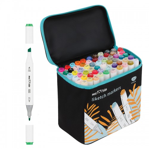 Набор двусторонних маркеров для скетчинга MESHU – идеальный выбор для художников, дизайнеров, иллюстраторов и любителей скетчинга. В наборе 60 основных цветов. Маркеры подходят для создания аниме и манги. Маркеры обладают пулевидным (2мм) и скошенным (6 мм) наконечниками, что позволяет прорабатывать как мелкие детали рисунка, так и закрашивать большие области. Толщина линии может варьироваться от 1 до 6 мм. Длина письма может достигать до 350 метров.