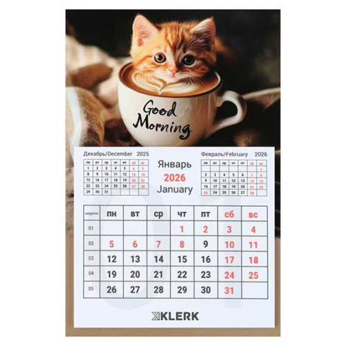 Календарь отрывной на магните 2026г. 'Котик в чашке' КЛЕРК, 10*15см