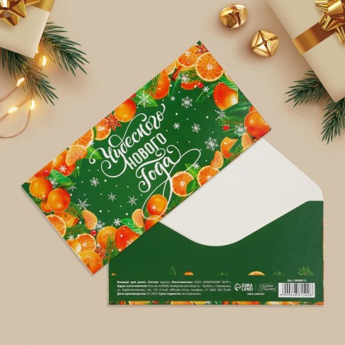 Конверт для денег 'Чудесного Нового года' мандарины, 16,5*8см