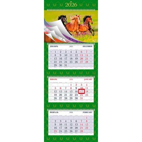 Календарь квартальный 2026г. 'Год Лошади' HATBER, 3 бл. на 4 гр. 32*84см