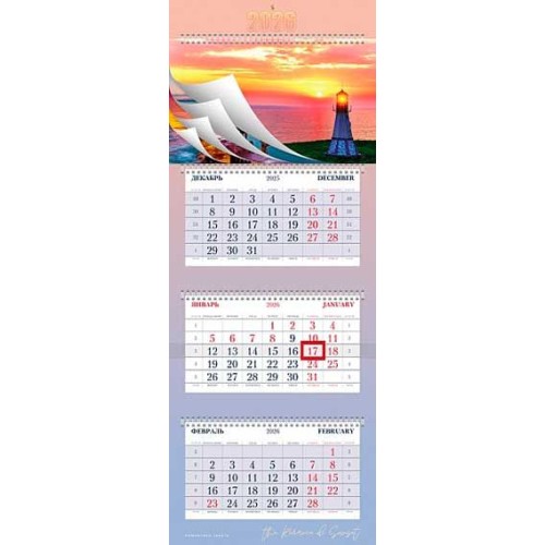 Календарь квартальный 2026г. 'Романтика заката' HATBER, 3 бл. на 4 гр. 32*84см