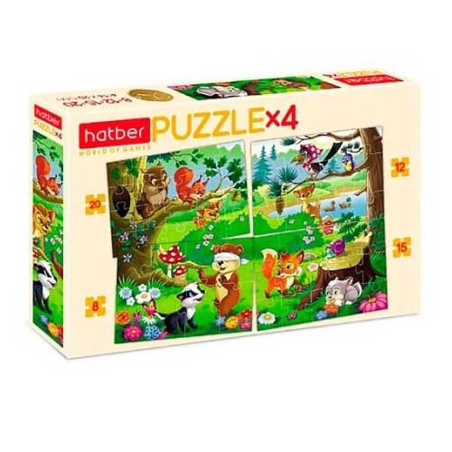 Пазл 8-12-15-20 эл. HATBER 'Лесные жители' 4 картинки в 1 коробке