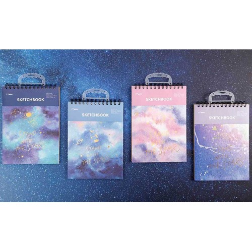 Скетчбук на спирали подойдет для создания оригинальных рисунков в различных видах техники рисования, рисовать можно в любом месте, где вас посетит вдохновение. Обложка - картон 300 г/м2. Внутри - белая бумага плотностью 130 г/м2. Задняя подложка - МДФ толщиной 2 мм.