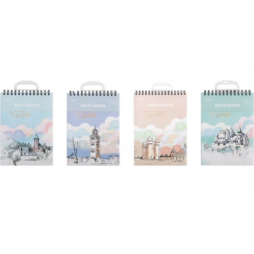 Скетчбук на спирали подойдет для создания оригинальных рисунков в различных видах техники рисования, рисовать можно в любом месте, где вас посетит вдохновение. Обложка - картон 300 г/м2. Внутри - белая бумага плотностью 130 г/м2. Задняя подложка - МДФ толщиной 2 мм.