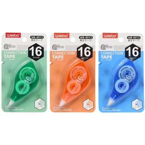 Корректирующая лента Weibo предназначена для исправления текста, написанного на бумаге. Ширина ленты 5мм, длина 16м, 3 цвета корпуса. Не требуется длительное высыхание ленты, после нанесения ленты вы можете сразу написать текст. Цвет корпуса в ассортименте.