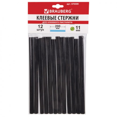 Клеевые стержни, диаметр 11 мм, длина 200 мм, черные, комплект 12 штук, BRAUBERG