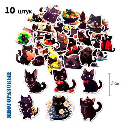 Наклейки 'Котики чёрные' 10шт, многоразовые, Гранит