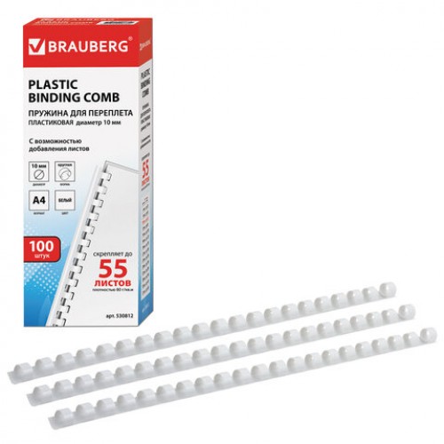 Пластиковая пружина для переплета документов. Рекомендуется использовать для переплета документов объемом от 41 до 55 листов. Преимуществом является возможность добавить листы в уже переплетенный документ. Совместима с большинством переплетных машин.