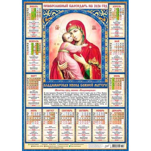 Календарь настенный листовой 2026г. А2 'Иконы. Владимирская икона БМ' ЛиС