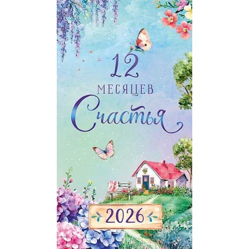Календарь настенный перекидной 2026г. '12 месяцев счастья' Арт и Дизайн, 9*16,5см, на скрепке