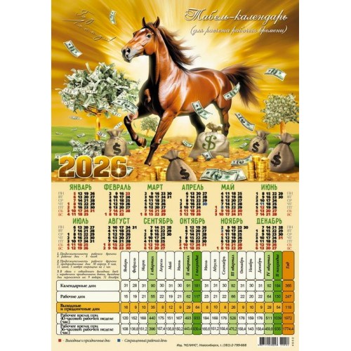 Календарь-табель 2026г. 'Символ Года. Конь на деньгах' Келинс, 29,5*20,7см