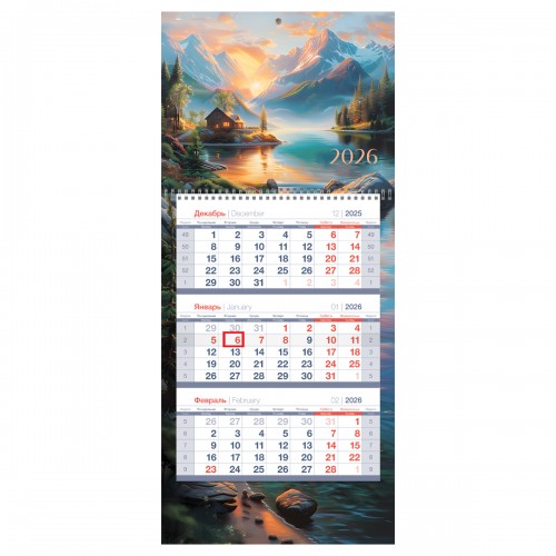 Квартальный календарь bg Mini premium «Горная идиллия» на 2026 год — отличный инструмент для планирования в офисе и дома. Размер календаря — 195*445 мм. Календарный блок изготовлен из мелованной белой бумаги плотностью 80 г/м2 с печатью в две краски. Подложка изготовлена из чистоцеллюлозного мелованного картона 250 г/м2, печать — полноцветная. Бегунок-курсор помогает легко ориентироваться по датам, а пикколо позволяет удобно разместить календарь на стене.