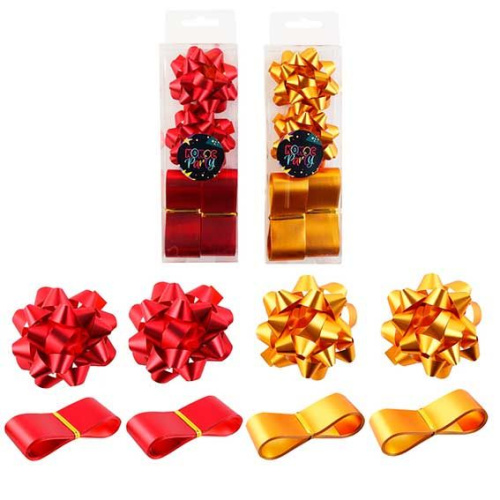 Набор для декора и подарков красный/золото, бант 6,3см - 2шт, лента 28,8см*3м - 2шт, КОКОС