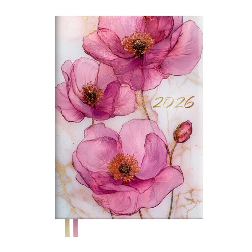 Ежедневник датированный 2026 ESCALADA, А6+, 176 л., арт. 70308/ 20 РОЗОВЫЕ МАКИ (кожзам: 126х174 мм, мягкий переплёт, запаянный край, материал обложки: искусственная кожа "Наппа"