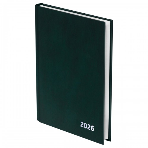 Классический датированный ежедневник BG на 2026 год формата А5 – незаменимый помощник для планирования встреч, звонков, переговоров. Твёрдая прошитая книжная обложка с прямыми уголками, покрытая бумвинилом зеленого цвета с тиснением серебряной фольгой, придает ежедневнику надежность и практичность. Внутренний блок состоит из 168 листов офсетной бумаги плотностью 60 г/м2, белизной 100 % и печатью в 1 краску. Ежедневник представлен в размере 135*206 мм. Формат А5 удобен в использовании как в офисе, так и деловых поездках.