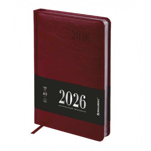 Ежедневник 2026г. А5 168л, бордовый 'Impression' BRAUBERG, кожзам, серебр.срез