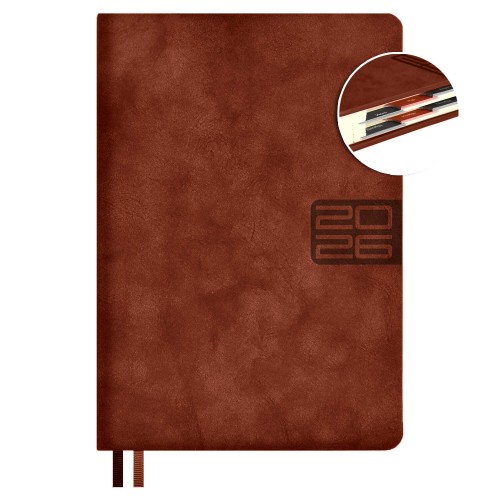 Ежедневник датированный 2026 ESCALADA, #ДУМАЙ КАК МИЛЛИАРДЕР, А5, 176 л., арт. 70240/ 15 ТИВОЛИ ГЛОСС КОРИЧНЕВЫЙ (кожзам: 146x211 мм, твёрдый переплёт, запаянный край, материал обложки: искусственная кожа "Тиволи глосс"