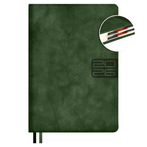 Ежедневник датированный 2026 ESCALADA, #ДУМАЙ КАК МИЛЛИАРДЕР, А5, 176 л., арт. 70244/ 15 ТИВОЛИ ГЛОСС ЗЕЛЁНЫЙ (кожзам: 146x211 мм, твёрдый переплёт, запаянный край, материал обложки: искусственная кожа "Тиволи глосс"