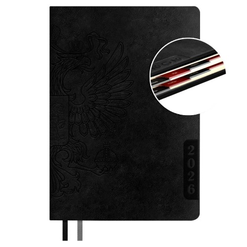 Ежедневник датированный 2026 ESCALADA, А5, 176 л., арт. 70245/ 15 НАППА ЧЕРНЫЙ (кожзам: 146x211 мм, твёрдый переплёт, запаянный край, материал обложки: искусственная кожа "Наппа"