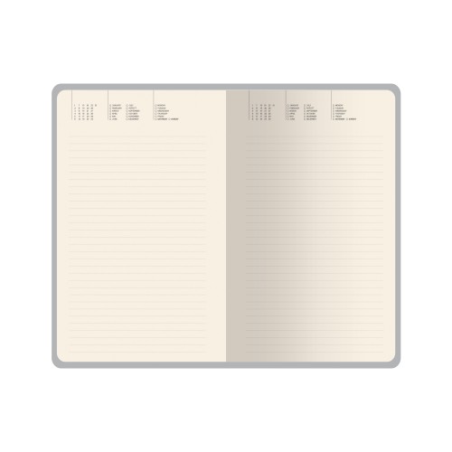 Внутренний блок изготовлен из бежевой бумаги плотностью 80 г/кв.м и содержит 128 листов в серую линейку.