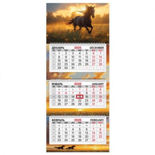 Календарь квартальный 2026г. 'Символ года' BRAUBERG, 3 бл. на 3 гр. 32,5*76см