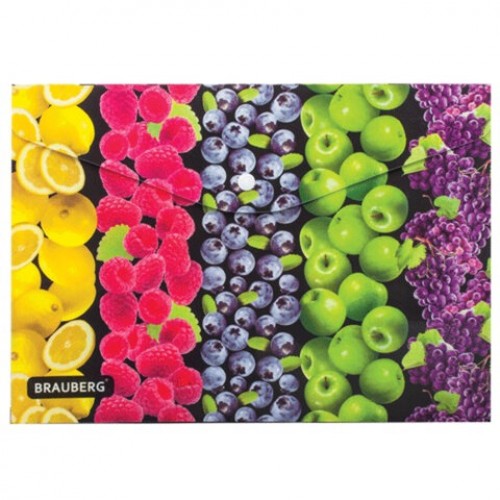 Папка-конверт на кнопке А4 'Фрукты' 180мкм BRAUBERG