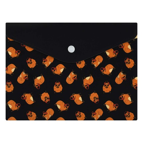 Папка для школьных тетрадей пластиковая Феникс+, арт. 72379/ 12 КРУТАЯ КАПИБАРА (полипропилен, формат А5, 24x17 см, 1 отделение (-я), кнопка, УФ-печать)