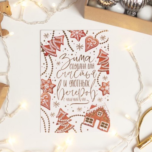 Открытка на акварельном картоне 'Имбирное печенье' 10*15см, тиснение