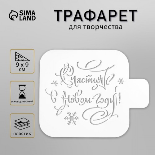 Трафарет 'Счастья в Новом году!' 9*9см, пластиковый, для творчества