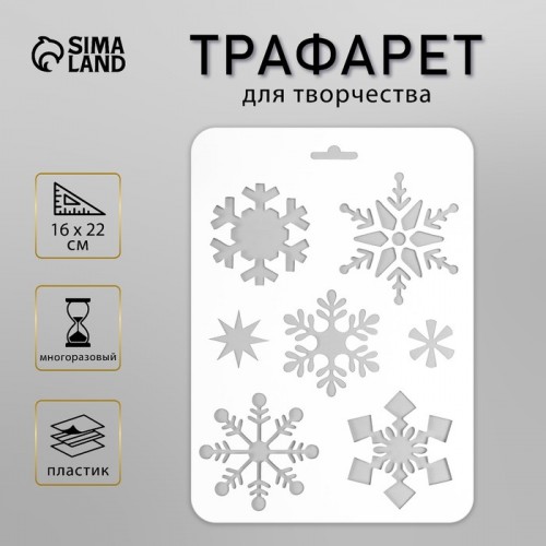 Трафарет 'Снежинки' 16*22см, пластиковый, для творчества