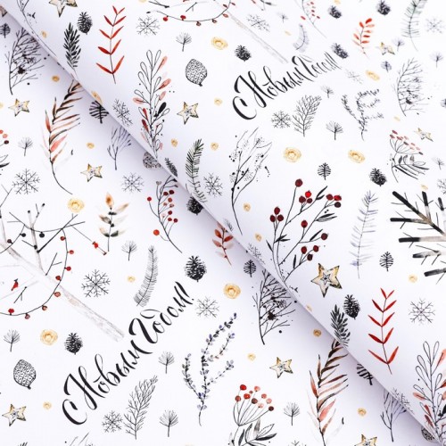 Бумага упаковочная 70*100см 'Веточки' глянцевая