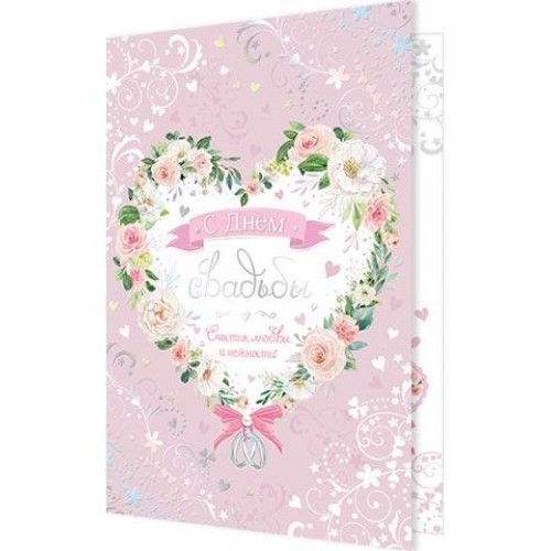 Открытка 'С Днем Свадьбы', А5, тиснение фольгой, Мир открыток