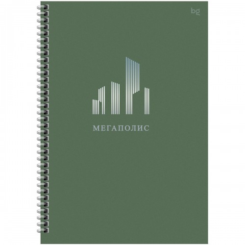 Тетрадь BG «Моноколор. Мегаполис» формата А4 (205*285 мм) на гребне – надежный помощник на учёбе и работе. В ней удобно хранить большой объем записей. Внутренний блок – 100 листов офсетной бумаги плотностью 60 м?, белизна – 100%, линовка – клетка. Твердая обложка тетради изготовлена из картона с матовой ламинацией и тиснением фольгой.