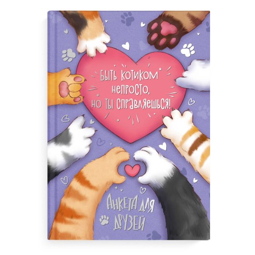 Анкета для друзей арт. 72284 ЛАПКИ / А5 (145х205 мм), 128 л., блок - печать в две краски, твёрдый переплёт 7БЦ, глянцевая ламинация, тиснение фольгой/