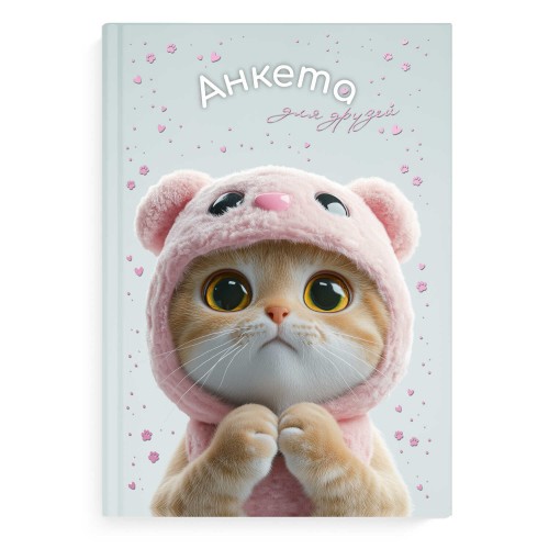 Анкета для друзей арт. 72288 КОТ В КАПЮШОНЕ / А5 (145х205 мм), 128 л., блок - печать в две краски, твёрдый переплёт 7БЦ, глянцевая ламинация, тиснение фольгой/