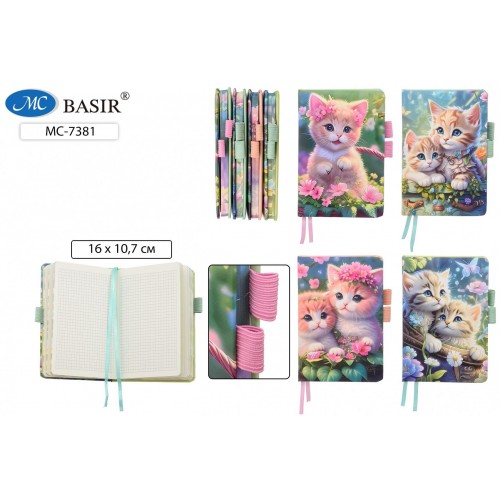 Блокнот А6 80л клетка 'Котята' BASIR, твердая обложка, поролон