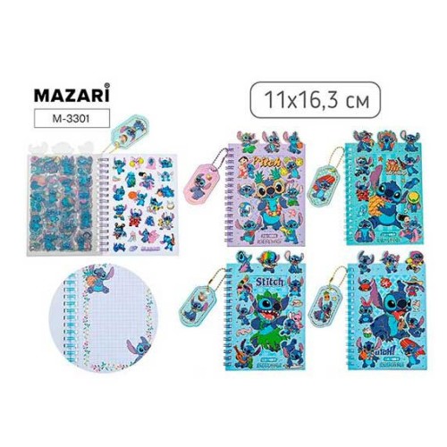 Блокнот 16л 11*16,3см клетка, гребень, 'Ушастик' MAZARI, +наклейки