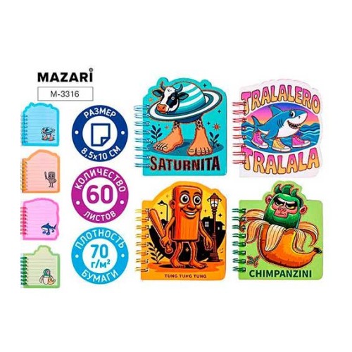 Блокнот 60л 8,5*10см , гребень, 'Итал.Мем' MAZARI