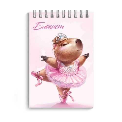 Блокнот, А7, 40 л, арт. 72780 КАПИБАРА-БАЛЕРИНА / Блок - белый офсет 60 г/м?, клетка, гребень по короткой стороне, УФ-лак выборочный с глиттером
