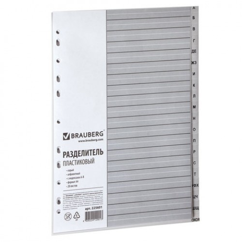 Разделитель А4 А-Я 20л пластик BRAUBERG