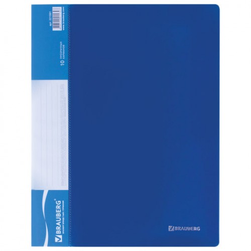Папка с 10 вкладышами синяя BRAUBERG 'Стандарт', 0,5 мм