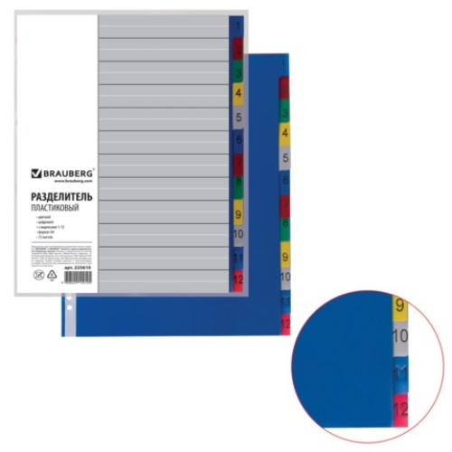 Пластиковые разделители BRAUBERG предназначены для систематизации документов внутри папок формата А4.