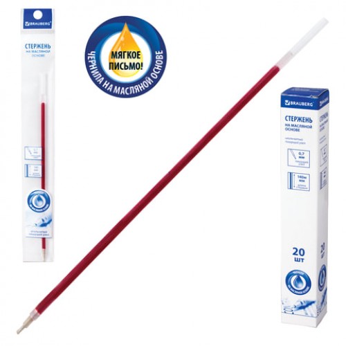Стержень шариковый масляный красный 140мм 0,7мм, линия 0,35мм BRAUBERG, игольчатый
